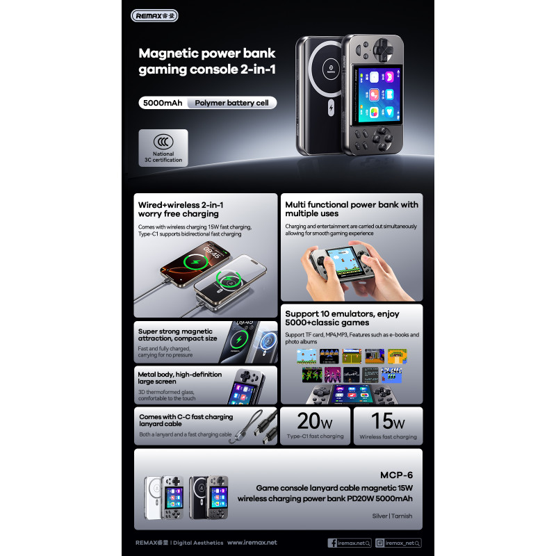 پاوربانک و کنسول بازی برند Remax محصولی متفاوت و هوشمندانه برای کسانی است که بهدنبال ترکیبی از شارژ سریع، سرگرمی قابل حمل و طراحی مدرن هستند. این دستگاه با ظرفیت 5000 میلیآمپرساعت و توان شارژ سریع 20 وات، همزمان بهعنوان پاوربانک و کنسول بازی عمل میکند. طراحی مغناطیسی و سبک آن، حمل آسان را ممکن کرده و در سفر، محل کار یا اوقات فراغت تجربهای جذاب برایتان رقم میزند.